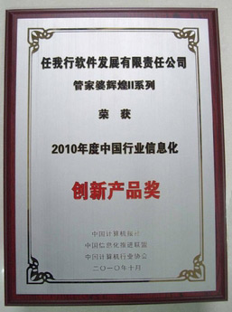 2010年10月,在中国计算机报社、中国信息化推进联盟、中国计算机行业协会联合举办的“2010年度中国行业信息化评选暨读者选择奖项评选”活动中,任我行软件公司开发的管家婆辉煌II系列产品荣获“读者选择奖”中的“2010年度中国行业信息化产品创新奖”。